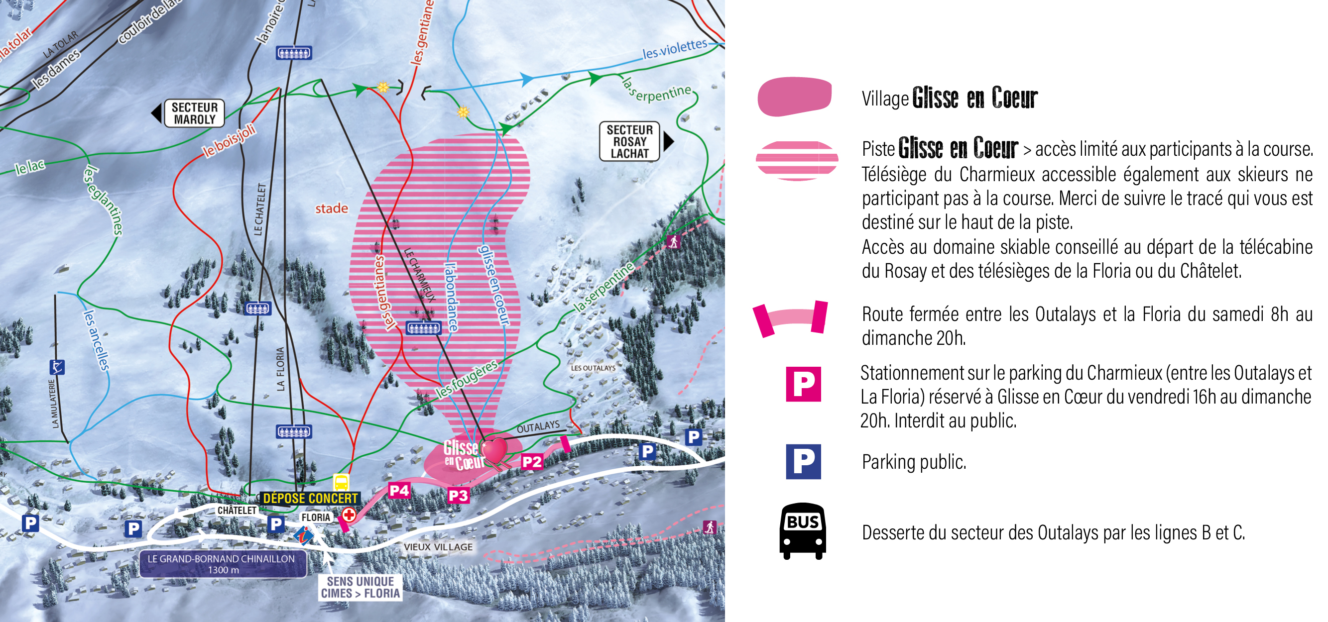 ATTENTION, STATIONNEMENT DIFFICILE EN RAISON DE L’ÉVÉNEMENT AU CHINAILLON ! NOUS VOUS CONSEILLONS VIVEMENT D’UTILISER LE SERVICE DE NAVETTES GRATUITES ET DIRECTES QUI ASSURERA DES ROTATIONS DU GRAND-BORNAND VILLAGE (GARE ROUTIÈRE) AU SITE GLISSE EN COEUR.