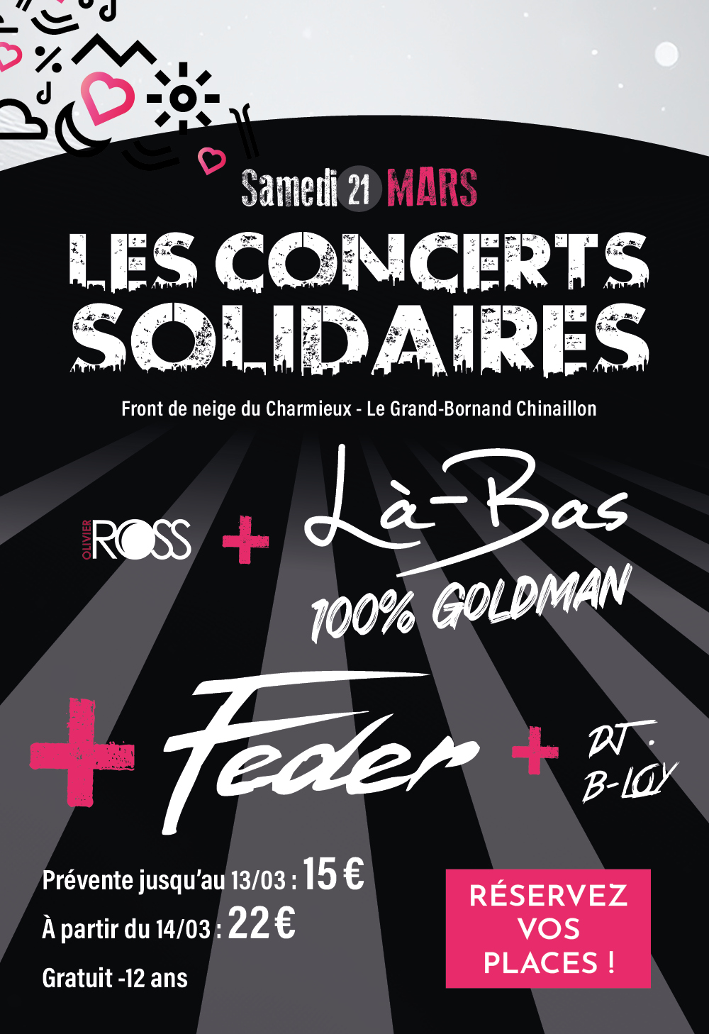 Fort d’une centaine de concerts depuis sa création en 2013, dont trois aux côtés de Michael Jones, le groupe Là-Bas - tribute 100% Goldman - peut se targuer d’avoir reçu les félicitations de Monsieur Jean-Jacques Goldman en personne ! Son répertoire retraçant les plus grands tubes de 1981 à 2001 signés par l'artiste préféré des Français, promet un moment de belle communion entre générations au pied de la piste "Glisse en Coeur" ! Depuis son arrivée sur les dancefloors en 2015 avec l’entêtant Goodbye, Feder s’est imposé comme un pilier incontournable de l’électro française. Sa recette magique reste inchangée: des beats réfléchis, des mélodies addictives et un sens inné du twist synthétique. Artiste à l’image forte, léchée et captivante, le Niçois au 1,5 milliard de streams sur les plateformes et 300 millions de vues sur Youtube multiplie les collaborations de prestige, dont les dernières en date avec Mylène Farmer - dont il a produit six des titres de son dernier album - ou encore le rappeur Sadek. Après Ofenbach en 2022, Cerrone et The Avener en 2023 ou encore Martin Solveig en 2024, Feder poursuivra la belle aventure de Glisse en Coeur avec les DJ stars de la French Touch...